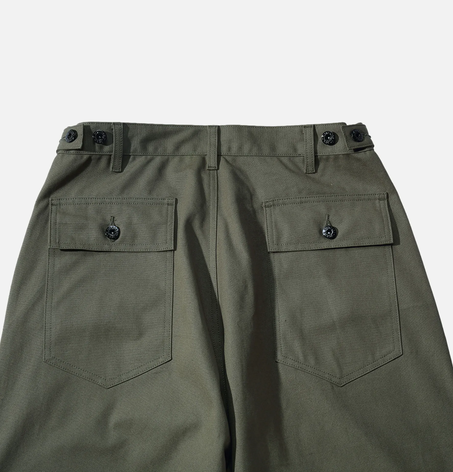 - Pantalons de l’armée OG107 des années 70 et sacs de pêche vintage