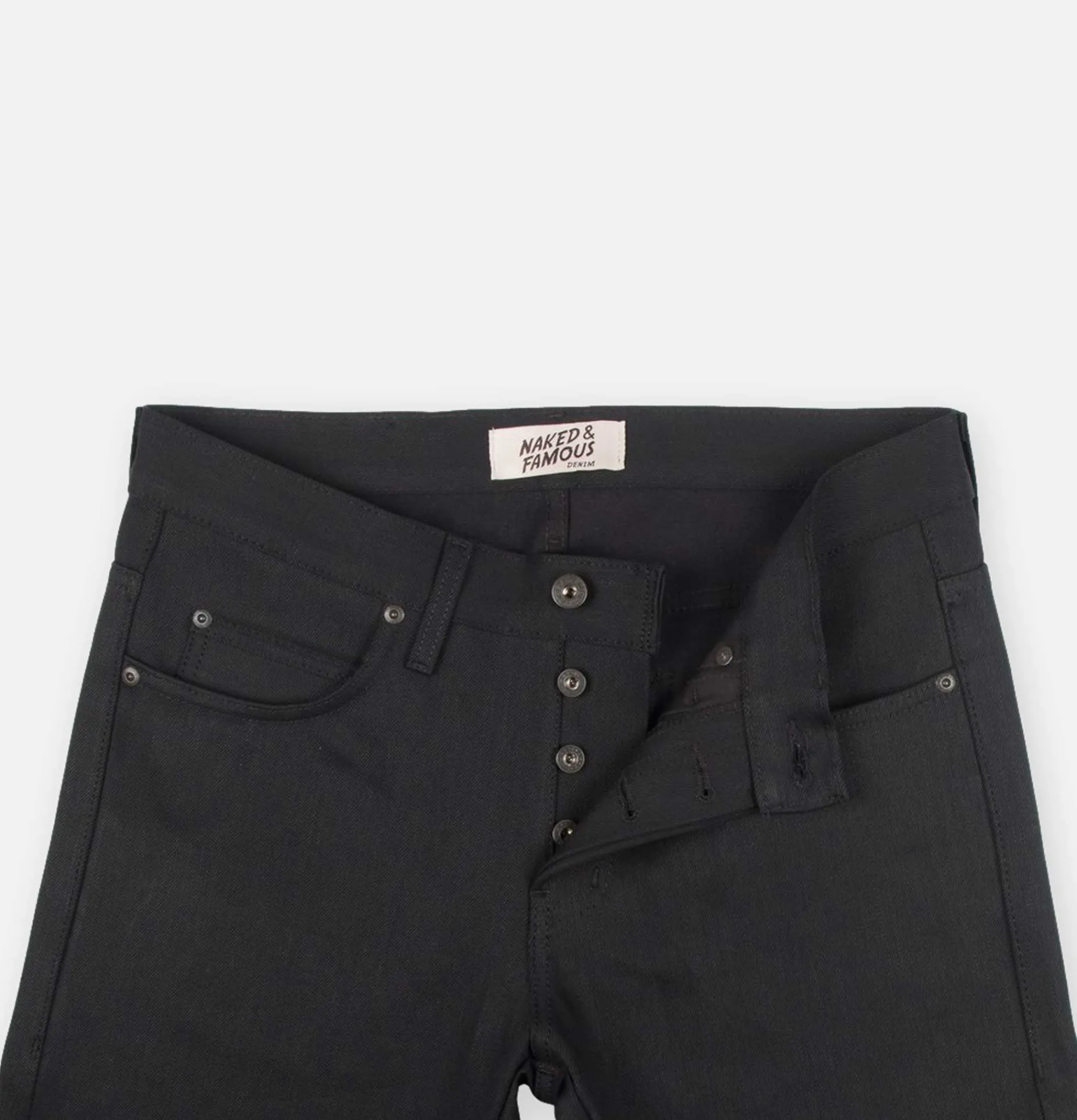 Jean Naked and Famous Weird Guy Solid Black Selvedge.