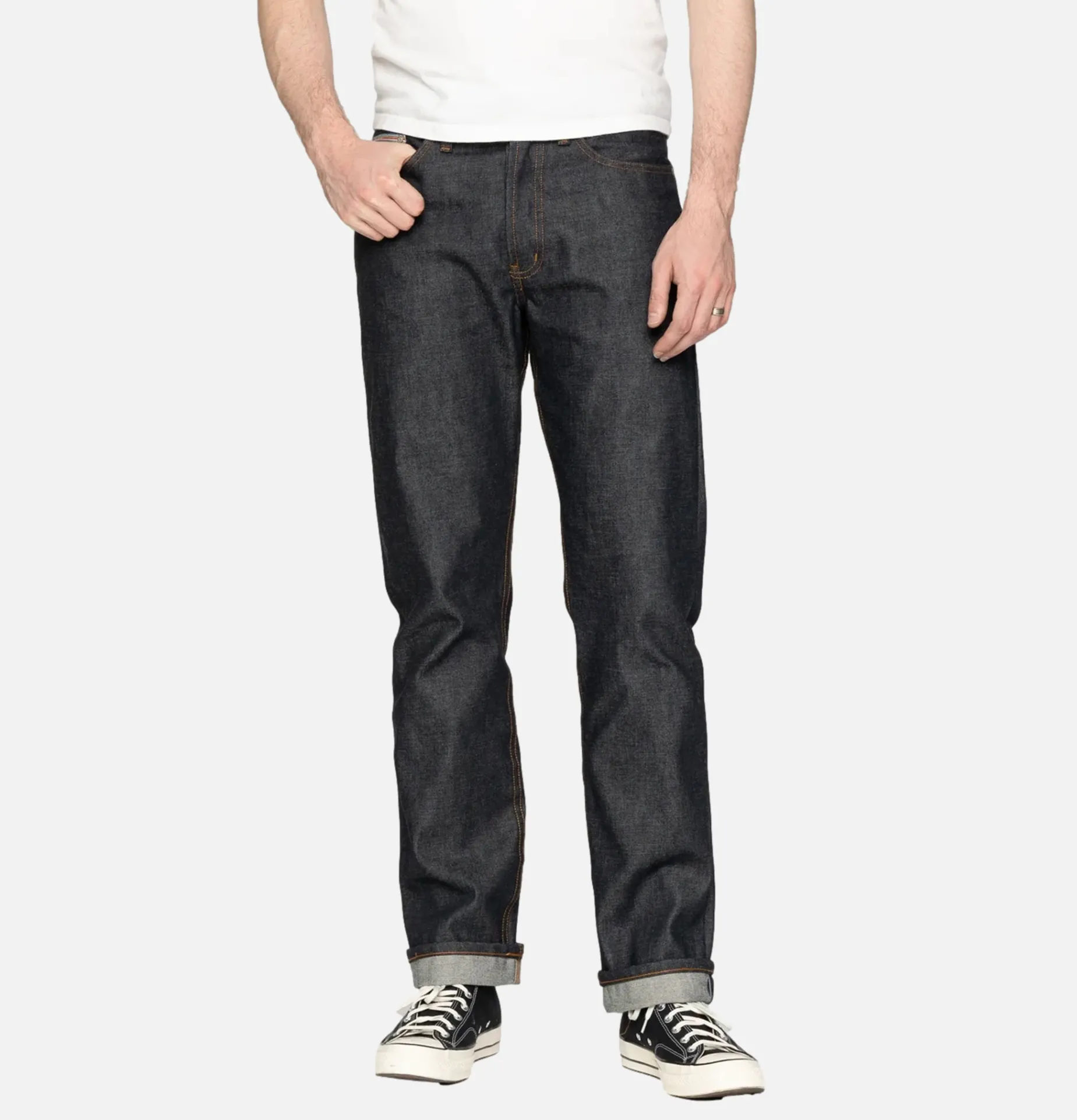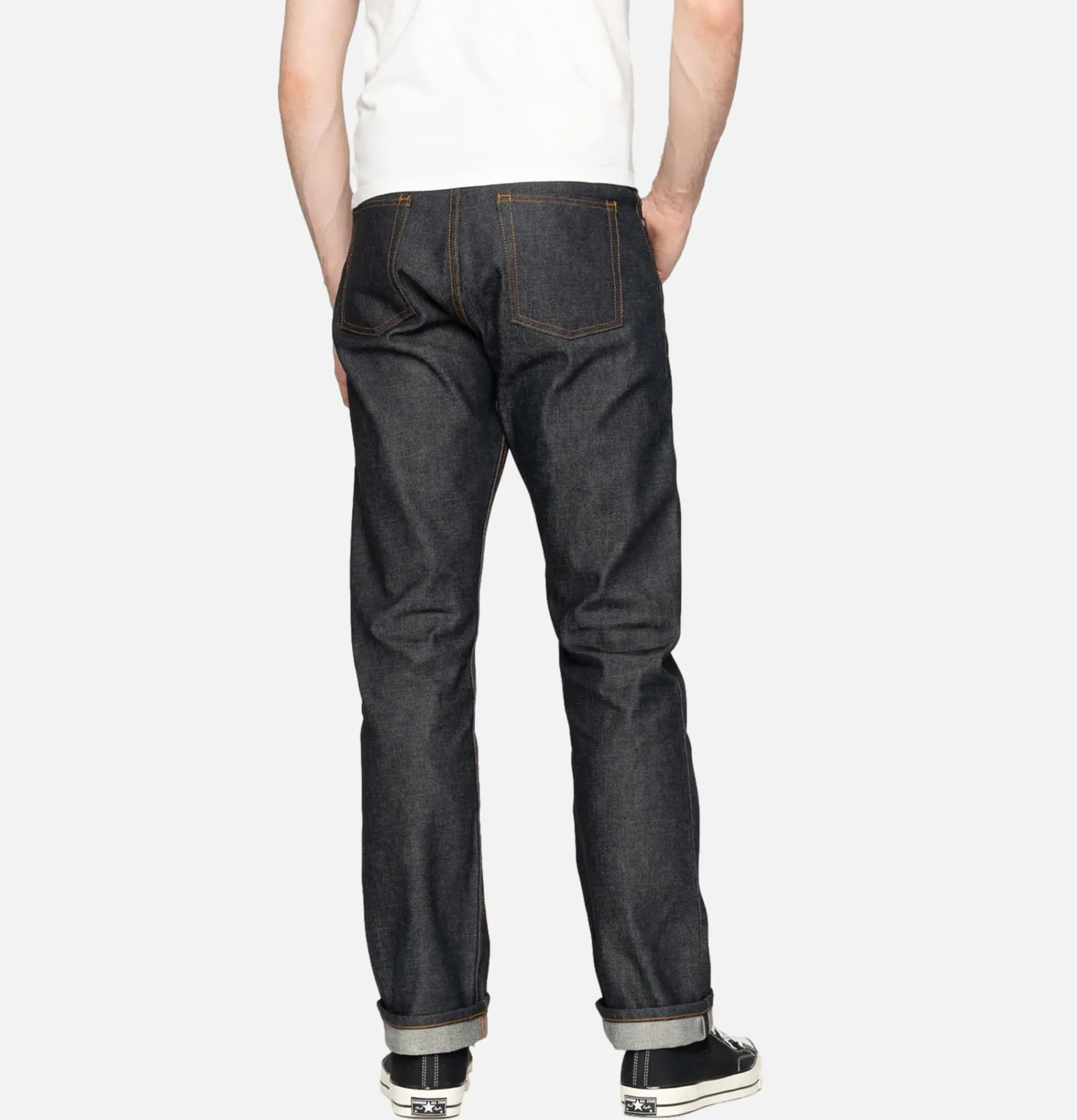 Denim japonais selvedge 12,5 oz, tissé à Okayama, au Japon, à partir de 100 % de coton upland mexicain.